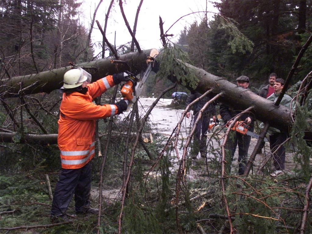 "Im Bereich des Forstamtes Bad Wildbad hatten wir 300.000 Festmeter Sturmholz. Davon fielen 90.000 im Bad Wildbader Stadtwald an. Der Rest im Staatswald. Die größten Sturmwurfflächen waren entlang der B296 zwischen Calmbach und Oberreichenbach und auf der Meisternebene. Letztendlich waren alle Hochlagen betroffen. Vor dem zweiten Weihnachtsfeiertag 1999 hatte es lange Zeit geregnet. Die Böden waren aufgequollen und die Bäume konnten sich nicht mehr halten. Schnell bildeten wir einen Krisenstab im Calmbacher Feuerwehrhaus."