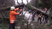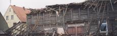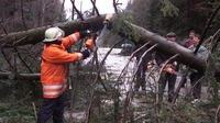 "Die Schäden gehen in die Millionen. Abgedeckte Dächer auch in Ispringen und Grunbach; eingestürzte Kamine; Stromausfälle in Neulingen, Engelsbrand, Niefern-Öschelbronn (siehe Foto), Wiernsheim, Schömberg, Neuenbürg; eingeschlossene Autos, deren Fahrer entnervt ausstiegen und sich den Weg durch den Äste-Dschungel bahnten."