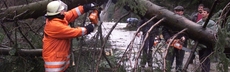 Wenige Sekunden später und nur wenige Meter entfernt, kracht ein weiterer Baum auf die Straße und trifft ebenfalls ein Auto, das kurz zuvor bereits durch herabfallende Bäume zum Stehen gezwungen wurde. Die Mutter, die gemeinsam mit ihren beiden Kindern und ihrem Ehemann unterwegs war, stirbt sofort. Die Kinder bleiben unverletzt.