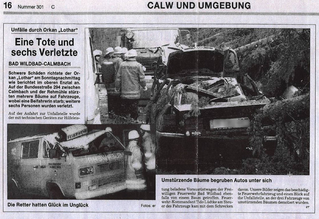 Mit diesen Worten führt Olaf Lorch-Gerstenmaier in seinen PZ-Artikel zu den Geschehnissen rund um den Orkan Lothar ein. Der Artikel wird am 27. Dezember 1999 veröffentlicht. Stunden zuvor unterhält sich der Redakteur mit zahlreichen Einsatzleitern - von der Polizei oder auch dem THW.