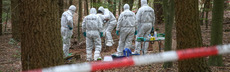 Nachdem Kriminaltechniker am Dienstag die Spuren beim direkten Fundort der Leiche gesichert haben, machen sich Beamte noch einmal daran, das 100 mal 300 Meter große Waldstück systematisch zu durchkämmen.